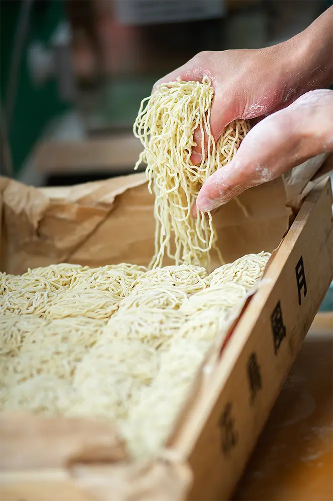 当店の麺は、着色料を一切使いません。厳選した国産小麦が持つ「自然な黄色」を活かし、素材本来の力で美しい色合いを実現しました。